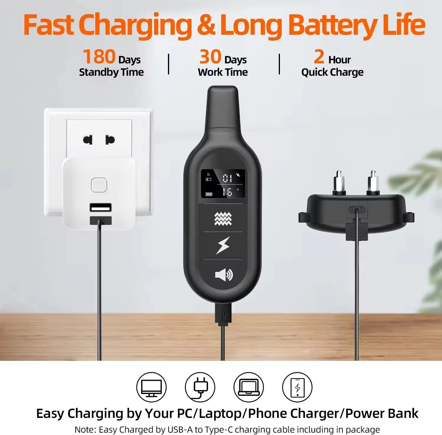 Made from durable plastic, the collar is lightweight, comfortable, and suitable for daily use. The included rechargeable battery provides long-lasting performance, making it a convenient and effective tool for pet training. Ideal for both indoor and outdoor use, this collar helps promote good behavior and strengthens the bond between you and your dog.